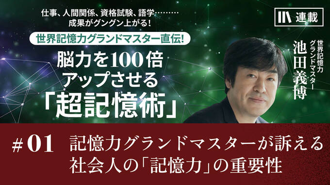 学生時代までは学校のテストのため、社会に出てからも資格試験のためにと、多くの人が「記憶」と向き合ってきたと思われます。しかし、記憶が力を発揮するのはそういった試験の場だけではなく、仕事のアイデアや効率化にも寄与すると語るのは、「記憶競技」で世界レベルの結果を残してきた池田義博さん。記憶のスペシャリストが考える、記憶力の重要性はどんなところにあるのでしょうか。