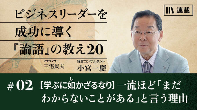 2話目でご紹介する言葉は、「学ぶに如かざるなり」。孔子はある時、昼夜ぶっ続けで寝食を忘れるほど考え続けたところ、効果がなかった。やはり、学ぶに越したことはないねと語ったそうです。では、「学ぶ」とはどういうことでしょうか? 小宮さんは、「知っている」と「知らない」を区別できることが、一流の学びの本質であると解説します。