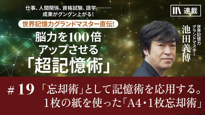 記憶術とは、覚えたいことをなるべく効率よく覚え、その記憶を強化するためのメソッドです。ただ、その手法を逆手にとって活用すれば、ネガティブな記憶を忘れるためにも使えると考えることができます。ここで紹介するのは、1枚の紙を使う記憶術を「忘却術」として応用する方法です。