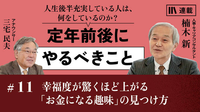 体力や気力が落ちてくる70代以降も続けられる「趣味」を見つけてほしい、と楠木さんは勧めます。仕事一筋で趣味なんてない、という人もいるでしょう。趣味を見つけるポイントは、過去にやり残したことをもう一度やってみること。もう一つは、多少でもいいから、お金を生む趣味であること。なぜなら、「お金になる趣味」は自分と社会とのつながりを確認できる最高のツールだからです。