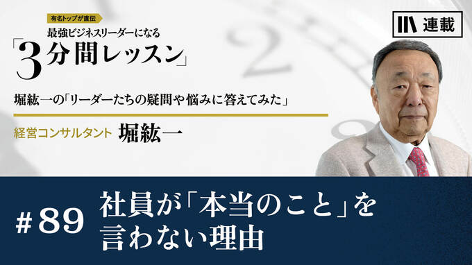 本連載では、“伝説のトップコンサルタント”堀紘一氏に、メルマガ編集チームがまとめたリーダーたちの悩みをぶつけ、ズバッと斬っていただきます。(2024年2月5日レター)