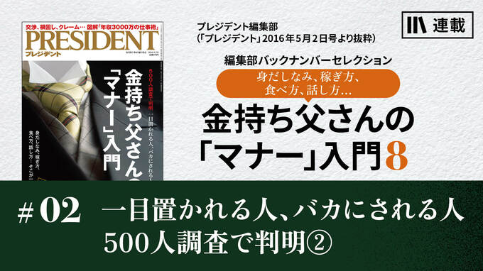 何気ないその行動が、職場の評価の分かれ目に――。一目置かれる人と、バカにされる人のマナーの意識はどう異なるのか。男女500人アンケート結果からある傾向が浮かんできた。(内容・肩書は、2016年5月2日号掲載時のままです)