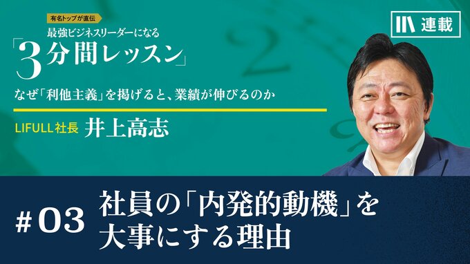 第3話 2023/5/8 月曜朝のエネルギー、全4回のレター 社員の「内発的動機」を大事にする理由 心のアップグレード 3分間レッスン マネジメント リーダーシップ LIFULLは社員の副業や兼業を認めているほか、起業の後押しもしています。社員の「挑戦」に対して、このように手厚い制度を用意している狙いは何でしょうか。井上さんの考えとは?(2022年2月21日レター) 井上 高志 LIFULL社長 1968年、横浜市生まれ。青山学院大学経済学部を卒業後、リクルートコスモス入社。97年に独立(創業当初の社名はネクスト)、現職。日本最大級の不動産・住宅情報サイト「LIFULL HOME'S」を展開。(2022年2月配信時)
