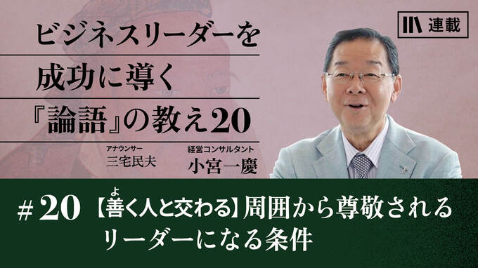 最後にご紹介する言葉は、「善く人と交わる」。斉の宰相を務めた晏平仲は、長く付き合うほど人々から尊敬されたという言葉です。孔子も長く一緒にいる弟子たちから尊敬を集めたそうです。周囲から尊敬されるリーダーになる条件と、人付き合いの法則について、小宮さんが事例を挙げながら解説します。
