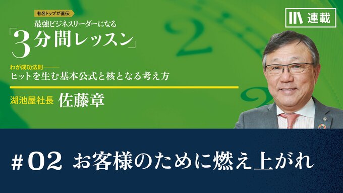 第2話 2023/5/8 月曜朝のエネルギー、全4回のレター お客様のために燃え上がれ 心のアップグレード 3分間レッスン マネジメント リーダーシップ 佐藤さんは、ヒットを連発するトップマーケターですが、開発の現場では、たいていどこかで理論では説明のつかないことが起きます。そのとき、リーダーに求められるものは何か。「商品開発者は野生児であれ」と語ります。その真意とは?(2022年3月14日レター) 佐藤 章 湖池屋代表取締役社長 1959年、東京都生まれ。82年、早稲田大学法学部を卒業後、キリンビールに入社。その後、キリンビバレッジに出向し、缶コーヒー「FIRE」、茶飲料「生茶」「聞茶」などをヒットさせた。2014年にキリンビバレッジ社長に就任。16年にフレンテ(現・湖池屋)執行役員兼日清食品ホールディングス執行役員に転じ、同年9月から現職。(2022年3月配信時)