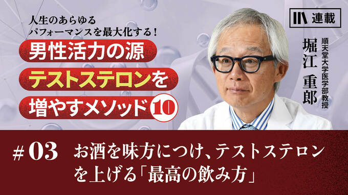 多くのビジネスパーソンにとって、お酒は社内外のコミュニケーションやリラックスに欠かせないもの。しかも、お酒は適切な飲み方をすれば、テストステロンを高める効果があることもわかっています。お酒を味方につけて、若さと活力を高める方法とは――。
