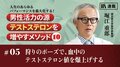 ウォーキングには、交感神経を抑制し副交感神経を活性化する効果があり、ストレスを軽減してテストステロンをアップします。5分ぐらいの短い時間でもしっかり効果がありますよ。