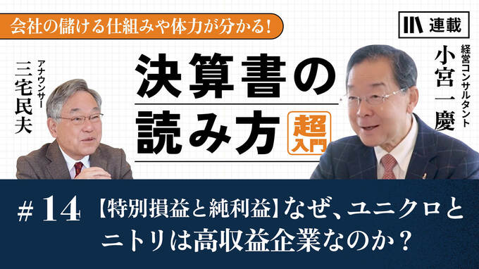 今回学ぶのは特別損益と純利益。ここで問題です。消費者の手が届く安価な商品を販売しているファーストリテイリングとニトリの売上総利益率はどのくらいでしょうか?答えは50%程度。薄利多売ではなく、厚利多売のビジネスなのです。ポイントは「顧客から見たQPSをどれだけ高められるか」だと小宮さんは解説します。