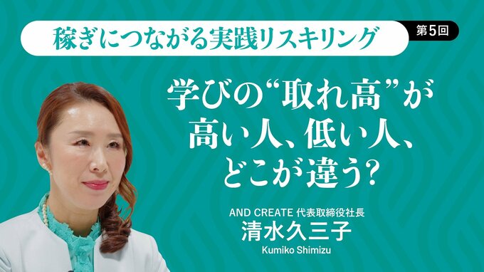 まったく同じ内容を学んだにもかかわらず、実践へつなげられる人と、そうではない人がいます。両者の違いはどこにあるのでしょうか。ポイントは、仕事に必要なスキルのレベル設定、抽象化された情報を実際に活用できるか、その逆に実践から得た学びを体系化できるか。学びの“取れ高”を高くするための考え方と、行動のためのハウツーをお伝えします。