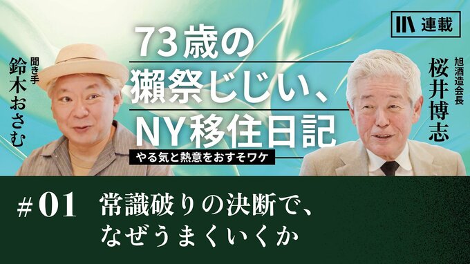 英語もよく喋れないのに、NYに移住して日本酒をつくるという無謀に思える挑戦を実現中の、現在73歳“じじい”こと旭酒造会長・桜井博志さん。一方、「めちゃ²イケてるッ」「SMAP×SMAP」をはじめ、数々の国民的人気番組の放送作家を務めながら、2024年3月で辞めることを宣言し、52歳から大きく人生の舵を切った鈴木おさむさん。常識では考えられない決断と挑戦を続ける二人の対談から、明日への仕事のヒント、人生やキャリアを考えるヒントをお届けします。