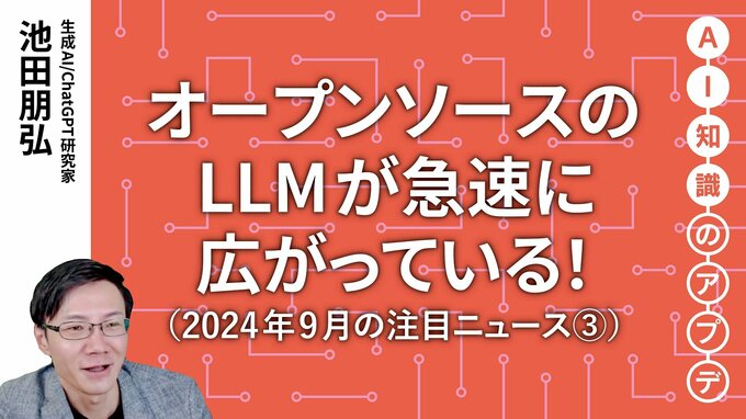 オープンソースLLMも利用が拡大。2024年8月現在で3億5000万回のダウンロードに迫る勢いです。去年の同時期に比べ10倍以上にもなります。急速に拡大している背景には、企業の秘密情報の保護と、LLMの性能の急激な進歩があります。池田朋弘さんが詳しく解説します。