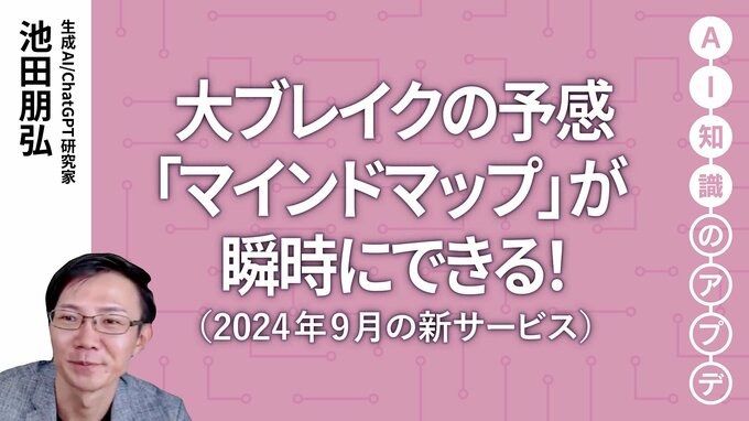 「最新の生成AIサービス」は、知っておくべき最新のツールを取り上げます。実際にサービスを使い、どんなことができるのかをじっくり解説します。9月は「Mapify」。生成AIを活用することで、自動でマインドマップを作成します。英語の論文を入力すれば、瞬時に日本語でマインドマップを作成。アンケートの回答を大量に入力しても、あっという間に整理してくれたり、YouTubeの動画の内容も即座にまとめてくれたりします。全体状況を把握したり、頭を整理したりするときにも役立ちます。具体的に「Mapify」をどう活用できるのかを実演しながら徹底解説します。