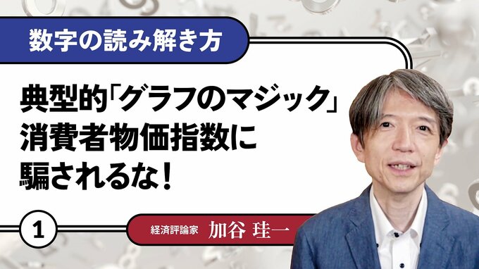 初回のテーマは「物価指数」。生活の状態やマクロ経済の動向を知る上で重要な数字です。消費者物価指数上昇率(前年同月比)と(前月比)、消費者物価指数の3つのグラフを比較。同じ事象を表現しているにもかかわらず、見た目の印象は全く異なります。数字のトリックに騙されないために、知っておくべき“数字のクセ”とは何か。物価をきちんと把握する上で、欠かせないことは何か。経済評論家の加谷珪一さんが詳しく解説します。