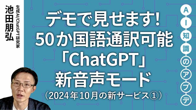 オープンAIがチャットGPTに新たな音声機能「アドバンスト・ボイス・モード」を追加しました。日本語を含む50以上の言語に対応し、自然な対話ができます。反応速度は平均0.3秒と、人間同士の会話に近いレベルです。日本語を英語にするなどの通訳もできます。どのように活用できるのか、具体的にデモしながら解説します。