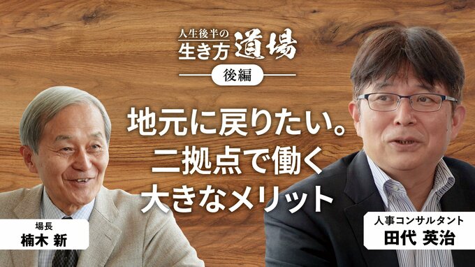 田舎の小学校の同窓会に40年ぶりに出席したことがきっかけとなって、人事コンサルタントの田代英治さんは新たな活動の拠点を作ろうと動き始めた。60代前半からの新たな挑戦は、自治体と組んで都市部から地域に人を呼び込むワーケーションプランを作ること。「全てがうまくいかなくなるかもしれないが、もう残りの人生も少ない。あまり失敗のことばかり考えていても進まない」と意欲的だ。「新しい働き方」のコンサルタントとしての仕事もやってみたいという田代さん。人事の専門家として、中高年が定年後に備えておくべきことについても熱く語る後編。
