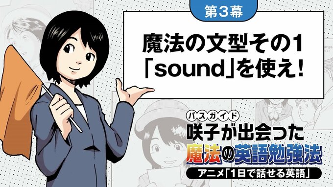 バス運転手の玄さんに習った「日本式イングリッシュ」のおかげで、花房咲子(24)の英語でのバスガイドは順調だ。基本形の「A=B」を取得してハッピーな咲子に、玄さんはステップアップ編として「誰+動詞+A=B」を新たに教える。「A=B」よりも、ハッキリと、カッコよく伝えられる便利な文のカタチだ!(ログイン後に動画が表示されます)