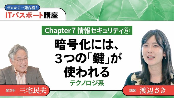 暗号化技術では、暗号化されていない情報を平文(ひらぶん)、解読が難しい状態に加工した情報を暗号文と言います。平文を暗号文に変換することを暗号化、暗号文を平文に戻すことを復号といいます。もとの情報を読むことができるのは、解読できる「鍵」を持つ人だけとなります。共通鍵暗号方式では、暗号化と復号に同じ鍵(共通鍵)が使用されます。公開鍵暗号方式では、暗号化と復号に異なる2つの鍵(公開鍵と秘密鍵)が使用されます。