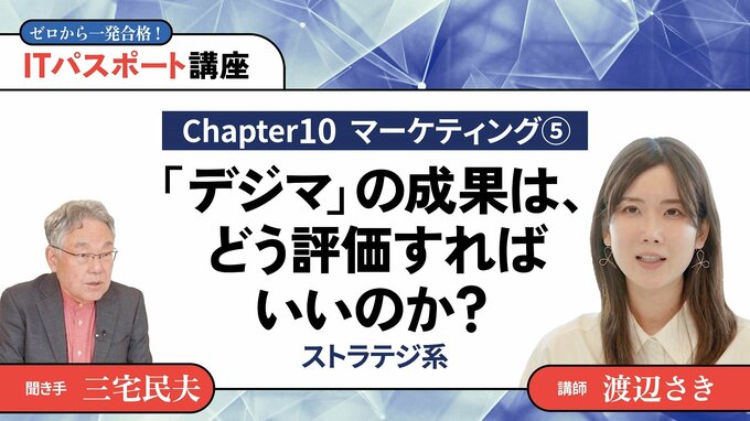 第54話 2025/5/19 ◎ストラテジ系 【Chapter10】マーケティング5「デジマ」の成果は、どう評価すればいいのか? 技のアップグレード 動画 デジタルスキル・DX デジタルマーケティングの強みは、効果計測できること。いくらお金をかけ、どれだけの広告成果が出たのかを数字で評価できます。 渡辺 さき 情報学講師 すきまデザイン代表。東京都立大学理学部化学科卒業後、リクルートに入社し、6年半マーケティング職に従事した。東進ハイスクール講師(ITパスポート試験、高校情報科)。YouTube「ITすきま教室」や、フリーナレーターとしてイベント、展示会でも活躍中。 本編の一部公開版