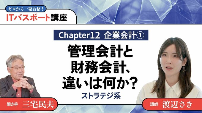 第61話 2025/6/9 ◎ストラテジ系 【Chapter12】企業会計1管理会計と財務会計、違いは何か? 技のアップグレード 動画 デジタルスキル・DX 管理会計は、自社の経営方針を決定するために利用されます。財務会計は、企業の経営情報をステークホルダに提供するための会計形式です。 渡辺 さき 情報学講師 すきまデザイン代表。東京都立大学理学部化学科卒業後、リクルートに入社し、6年半マーケティング職に従事した。東進ハイスクール講師(ITパスポート試験、高校情報科)。YouTube「ITすきま教室」や、フリーナレーターとしてイベント、展示会でも活躍中。 本編の一部公開版