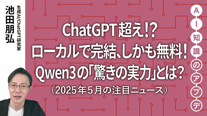 あまたあるニュースの中から、この1カ月で最重要なものを5本選び、その背景や意味合いをじっくり解説する「注目ニュース5選」。2025年5月号は、『Apple Intelligence日本語版リリース』、『MCP(Model Context Protocol)の動き』、『Alibaba Qwen3、ローカルでも精度が高い処理が可能』、『Duolingo、全社員に「AIファースト」宣言』、『AI 2027年:AGI達成の予測:24カ月で人間レベルのAIへ』の5本です。
