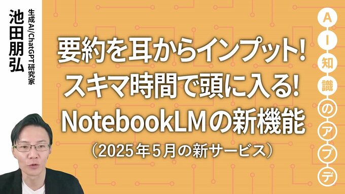 資料を読む時間がない…そんな悩みを解決するのが、NotebookLMの新機能。AIが要点をまとめて、会話形式の音声で分かりやすく伝えます。まるでラジオやポッドキャストを聴くように、通勤中や作業中での「ながら学習」ができます。具体的な活用方法を池田朋弘さんがデモをまじえて詳しく解説します。