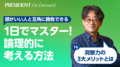ビジネスパーソンが仕事を進めるうえで、ロジカルな考え方、すなわち「論理的思考」は必須と言われている。外資系コンサルティングファームや広告代理店での経験をもとに、戦略プランニングディレクターの羽田康祐さんが、論理的思考が必要な理由から、どう思考を整理して考えるのかを、ひとつひとつていねいに分解して解説。問題解決力を高め、さらに未来へ向けて新たな道を拓く発想力を養うように導く。第9回「ピラミッドストラクチャーとは何か」では、論理的思考法のフレームワークの1つ「ピラミッドストラクチャー」による考え方を解説。