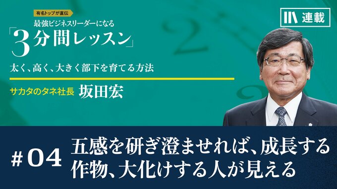 坂田さんは、よく社員たちに、このように語りかけます。これはもののたとえで、「五感をフル活用することが大事だよ」という意味です。たしかに、種からできた野菜を味わうにせよ、花の香りを嗅ぐにせよ、鋭敏な五感が絶対に必要です。よい作物や花は、微妙な茎の固さや花びらの厚さなどに違いがあらわれるといいます。五感を研ぎ澄ませることは、ビジネスにも活きると説く坂田さん。その真意とは。(2023年2月27日レター)