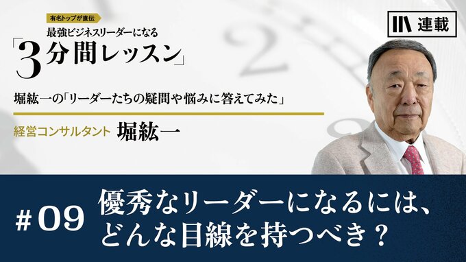第9話 2023/5/8 月曜朝のエネルギー、レジェンドから見た未来 優秀なリーダーになるには、どんな目線を持つべき? 心のアップグレード 3分間レッスン マネジメント リーダーシップ 本連載では、“伝説のトップコンサルタント”堀紘一氏に、メルマガ編集チームがまとめたリーダーたちの悩みをぶつけ、ズバッと斬っていただきます。(2022年5月9日レター) 堀 紘一 経営コンサルタント 1945年、兵庫県生まれ。東京教育大学(現筑波大学)附属駒場高校(筑駒)、東京大学法学部を卒業。読売新聞社、三菱商事を経て、米ハーバード大学ビジネススクールでMBAを首席で卒業。81年、ボストン コンサルティング グループ(BCG)に入社、89年から日本支社社長。2000年6月にドリームインキュベータ(DI)を設立し、社長、会長を歴任。20年6月に取締役を退任。