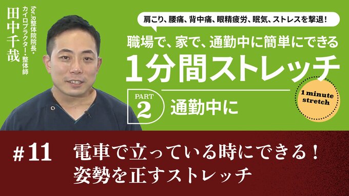 通勤中の電車で立ちながら、簡単にできるストレッチがあります。今回はご紹介するのは、お腹のインナーマッスルを鍛えることで姿勢を安定させる「ドローイン」、足の血流をアップさせる「かかと上げキープ」「つま先上げキープ」。電車で立ちっぱなしのまま、こっそりできる1分間ストレッチ。動画の真似をして、車内で実践してみましょう。