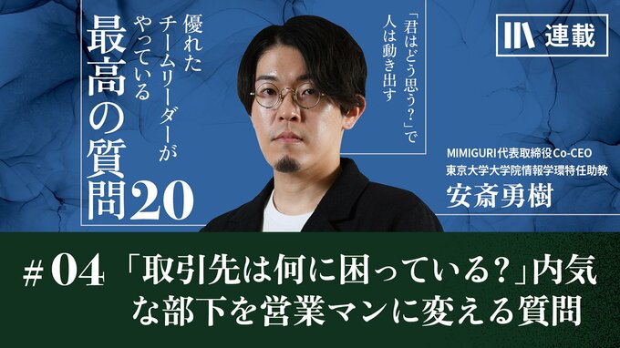 営業に配属されたものの、とても社交的とは呼べない部下。これでは仕事になりそうもない……諦める必要はありません。「取引先は何に困っている?」の一言が、部下を優秀な営業マンに変える第一歩。内向的な性格を武器に変える逆転の発想とは。