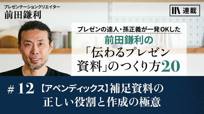 アペンディックスは、本編には盛り込むことができなかった、追加の説明に必要な情報をまとめた補足資料です。一通りプレゼンをした後、聞き手からの質問に回答するときによく使われます。アペンディックスの作成には、本編スライドの考え方とは違った、制作の極意があります。