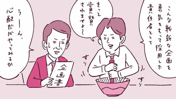 そんなときは、先ほど言った通り、メリットとデメリットの情報を提示して、一緒に上司と検討することです。ただし、前もってまず社内外を問わず前例を探しておきましょう。その中に成功例があれば、それを説得材料として上司と詰めていくのがいいと思います。