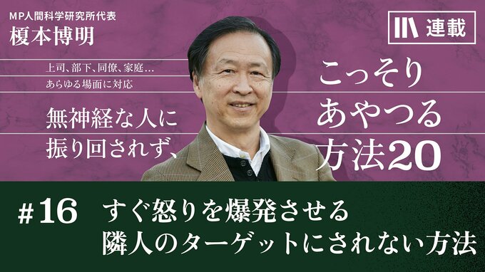 Part 4では、ターゲットにされたら大火傷する人からうまく逃れて、被害を最小限に食い止める実践的な方法について解説します。かかわると面倒なタイプはいろいろいますが、もっとも扱いづらいのは短気な人でしょう。すぐに感情的になる人とはなかなか建設的な議論もしづらいし、何より理屈が通らないのが困ります。また意味のない怒りだとわかっていても、隣でわめかれるとこちらのストレスも急上昇。今回は、沸点の低いタイプに目をつけられないための防御策を披露します。