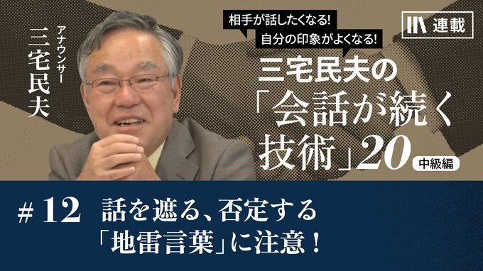 熱の帯びた会話にしたいあまり、ついつい相手の話に「でもね」「しかし」といった言葉を差し込んでいませんか? こうした「地雷言葉」を発したり、つい反論を口にしてしまうと、とたんに会話はしぼんでしまったり、途切れたりするものです。会話を続けるために必要な心得についてお話します。