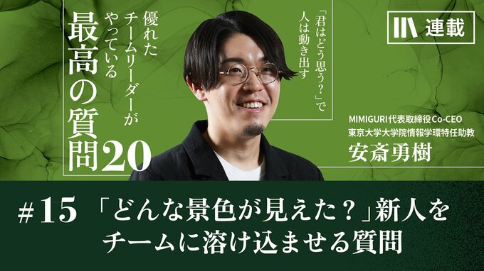 新しいメンバーが加わって、チームの雰囲気もリフレッシュ! しかし、上手に迎え入れないと、新メンバーがチームや仕事に困惑してしまうかもしれません。同じチームの一員として溶け込ませるチャンスがやってくるのは会議の場面。「どんな景色が見えましたか?」と問いかけるべきタイミングとは——