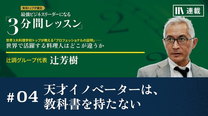 第4話 2023/5/29 月曜朝のエネルギー、全4回のレター 天才イノベーターは、教科書を持たない 心のアップグレード 3分間レッスン マネジメント リーダーシップ 最終回は、辻さんが「規格外」と称する料理人を紹介する。年を取れば、先に答えが見える場面も増えるが、時には、過去の常識を捨ててはどうかと辻さんは言う。(2023年5月29日レター) 辻 芳樹 辻調グループ代表 1964年、大阪府生まれ。1993年に辻調理師専門学校校長、辻調グループ代表に就任。2000年に、九州・沖縄サミット首脳晩餐会料理を監修、19年にもG20大阪サミットの首脳夕食会でエグゼクティヴプロデューサーを務める。21年、内閣府「クールジャパン官民連携プラットフォーム」共同会長に就任。24年春、学校法人辻調理学館「辻調理専門学校 東京」を、東京都小金井市に開校予定。隣接する国立大学法人東京学芸大学とも22年に連携協定を締結。「食と環境」をテーマに教育研究を深化させ、両校が培ってきた「知」を集結させ、次代を見据えた学びを提供する計画。(2023年5月配信時)