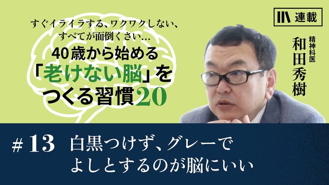 40歳を過ぎると、前頭葉の老化に加えて、神経伝達物質のセロトニンが減ってきて、意欲低下の大きな原因となります。なぜセロトニンが減るのでしょうか? 中年特有の「物の考え方」が原因になっている、と和田さんは指摘します。では、セロトニンを減らさないために、物の考え方をどう変えていけばよいのでしょうか?