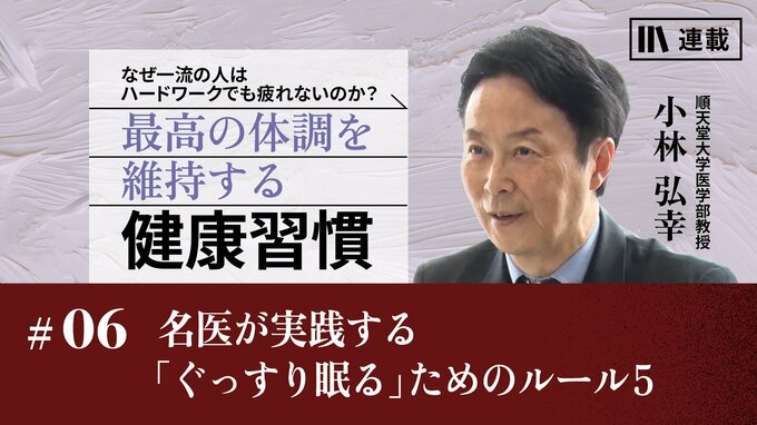 年齢とともに「ぐっすり眠る」ことが難しくなってきます。加えて、現代はストレス社会なので、これも睡眠の妨げになります。熟睡を妨げている原因は、自律神経の乱れ。まず自律神経を整えないと、深く眠ることは無理なのです。今回は、小林先生が実践する「ぐっすり眠る」ための5つのルールを教えます。