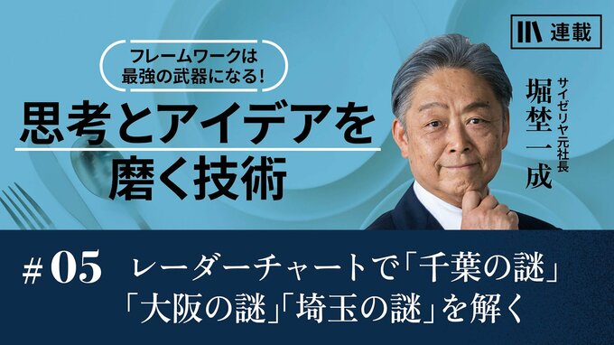 飲食店というのは、既存のお客さまが新しいお客さまを連れてきて、店の使い方を教えてくれるところがあります。千葉県で個人経営のイタリア料理レストランとしてスタートしたサイゼリヤ。いまでも千葉の店舗には、ワインを飲む店としてのDNAが残っています。一方で、大阪の店舗は千葉とは違う顔を見せます。今回は、エリアごとの傾向を一目で把握するだけでなく、より広い視野で物事を捉えるためのフレームワークとして、「レーダーチャート」の使い方をご紹介しましょう。