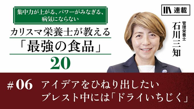アイデアをひねり出すには、脳をフル回転させることが必要です。その脳にエネルギーを供給できるのが「ドライいちじく」です。斬新なアイデアはリラックスした状態のときに生まれやすいといわれていますが、ドライいちじくの上品な甘さや香りにはリラックス効果もあります。