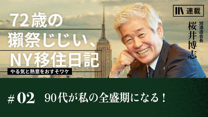 ニューヨークに獺祭の酒蔵をつくる――。大きな野望を持ち、72歳でニューヨークに移り住んだ桜井会長。やっと戻り始めた中学英語の記憶、左ハンドルの車で逆走、日本の比ではない物価高など、さまざまな困難に直面しながらも、「今が人生で一番華やか」と軽やかに語る。「90代で全盛期を迎えたい」と意気込む桜井会長のモチベーションの源を探った。