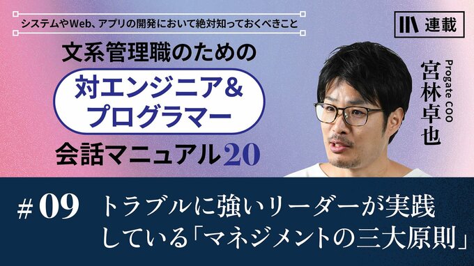 システム開発においてトラブルの発生はつきもの。どんなに緻密な計画を立てていても、起きるときは起きます。しかし、優秀なプロジェクトリーダーは、トラブルが起こっても冷静に対処して、最小限のダメージに食い止めます。彼らはどこが違うのでしょうか? その答えは、これからお話する「マネジメントの大原則」を守っていることなのです。