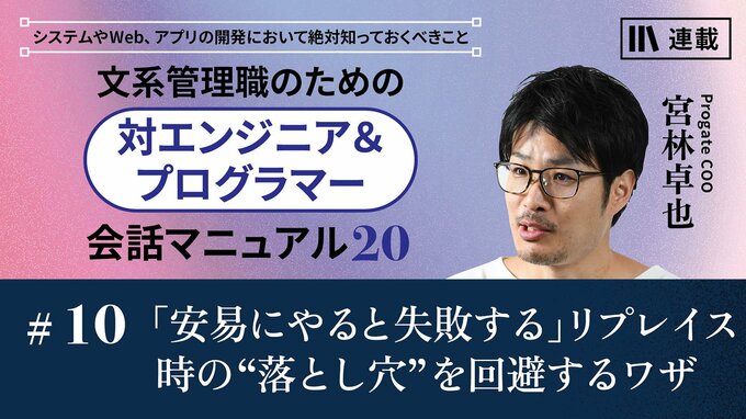 システムは運用をしていくと、更新や改修のためのリプレイスが避けられません。しかし、安易にリプレイスを実行すると、予期せぬトラブルやコスト増に繋がる「落とし穴」が待ち受けていることも――。今回は、リプレイスの目的と効果、成功のポイントについて。正しい知識を身につけて、リプレイス成功につなげましょう。