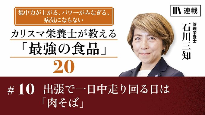 新型コロナウイルスの感染拡大も収まり、出張で地方を駆け回っている人も増えているのではないでしょうか。長距離の移動は、自分が思っている以上に、体に負担がかかっています。時間に追われ、食事が不規則になって栄養のバランスも乱れがちに。忙しい出張中には、ワンプレートでいろいろな栄養がとれる「肉そば」がおすすめです。消化を促すため、よく噛んで食べましょう。