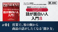 すると旦那は「馬鹿だね、おまえは。よし、それじゃ今度乗せてやるから、よく見てみろ」といった具合に返すので、会話が弾む。相手を持ち上げるだけでなく、ときには軽妙なユーモアを交えて、ほどよい塩梅で相手を“落とす”のも、トークのスパイスになる。それがヨイショのツボで、互いに胸襟を開いた関係になる。デキる営業マンだと、取引先の幹部に次のような感じでヨイショをしたりしないだろうか?