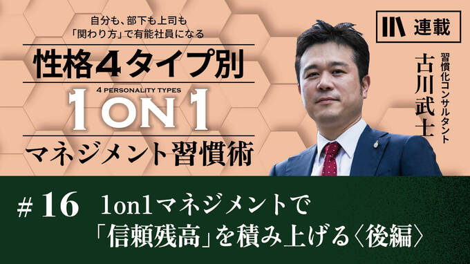 1on1マネジメントは、個々に個性や考え方の異なる部下に合わせたマネジメントですから、部下との対話を通じて、部下の性格、得意・不得意などのパーソナリティ、将来のやりたいことや現在の思いなどを深く理解することが必要です。また、深い話をするためにも、あなたの指導やアドバイスに耳を傾けてもらうためにも、あなたへの安心感や信頼感といった「信頼残高」を多く保つことが欠かせません。