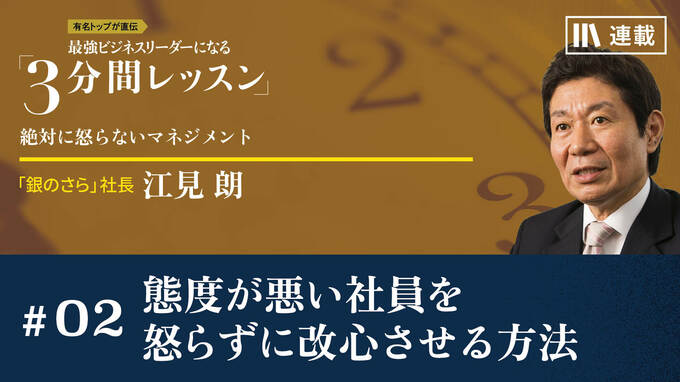 部下に対して、絶対に怒らない——そう聞くと、「ナメた部下にはガツンと言ったほうがいいのではないか」「態度の悪い部下はちゃんと言動を改めないのでは」と思う人もいるかもしれません。しかし、「銀のさら」の江見朗社長は、どんな相手でも、怒らず指導したほうが、確実に成長すると話します。では、どのように指導することで、部下の態度を改善させるのでしょうか?(2023年10月16日レター)