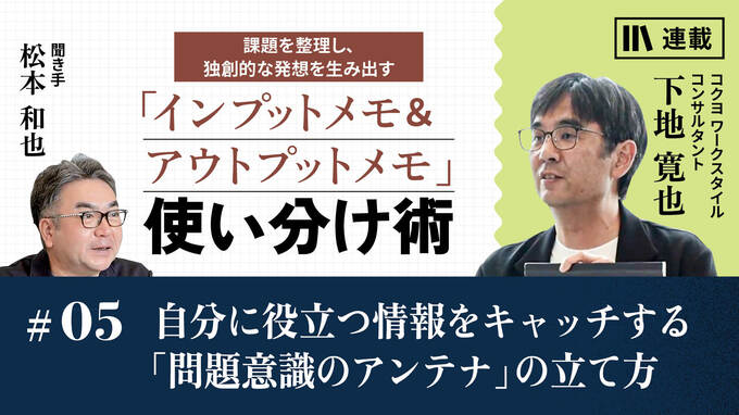 人によって、活用したい情報は異なります。自分に役立つ情報を効果的にキャッチするにはどうしたらいいのでしょうか? ポイントは、日頃から問題意識のアンテナを立てておくこと。具体的には、自分の「短期的なテーマ」と「中長期なテーマ」を設定して、書き出しておくことです。下地さんが実践例を紹介します。