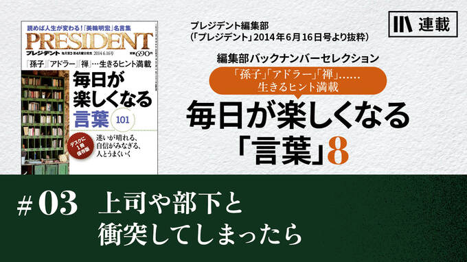 例えば部下のルール違反を知ったとき、怒りや動揺を覚えない上司はいないはず。違反の程度によっては「部下はルールを破るもの」と性悪説の立場でいれば、その対処法を前もって考えられるし、腹も立たない。悪事をすべて許せというのではありません。状況に応じて判断することが必要なのです。「悪事(違反や不正)を見逃す」ことは、必ずしも「不善」ではありません。杓子定規に「会社のルールを破った」と、何でもかんでも査定や評価の対象にしてしまえば、逆に部下は働く意欲をなくし、上司を恨んでしまう。