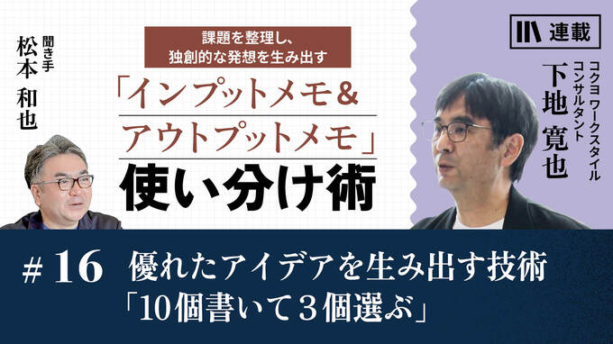 「さぁ、アイデアを出すぞ!」と思ってノートを目の前にして、固まってしまうことはありませんか? 企画のプロでも、即採用といういいアイデアが次々と出てくるわけではありません。彼ら一流も「10個書いて3個選ぶ」という作業を地道に繰り返しているのです。その方法を、下地さんが実演します。
